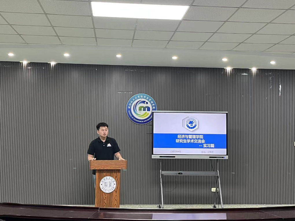 在分享交流活动中,工程管理专业吴晓港同学分享了自己的实习实践经验,他引用寓言故事强调在实习工作过程中要善于表达自己和认识自己,介绍了专业型硕士研究生的培养方案并提出了实习建议。向同学们展示了在实习过程中的注意事项,包括了解自己的目标,根据目标制定计划,并在面对诱惑时如何抵制以防被诈骗等。