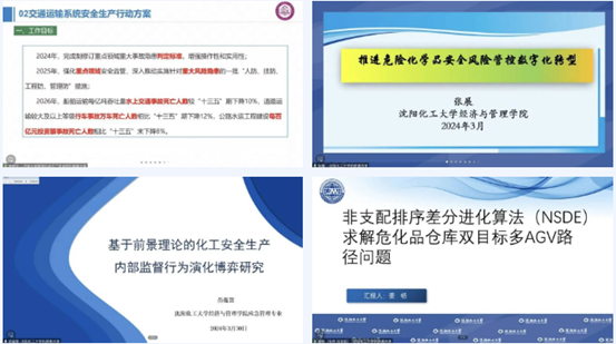 betway西汉姆联官网副院长刘铁民主持会议第二单元。betway西汉姆联官网张展老师以《推进危险化学品安全风险管控数字化转型》为题,介绍了化工和危险化学品安全生产治本攻坚三年行动方案(2024-2026年),对推进危险化学品安全风险管控数字化转型工程展开剖析,梳理了近三年政府出台的相关指导意见和实施方案,最后提及新质生产力与石化行业数字化转型、设备更新升级。betway西汉姆联官网苗蕴慧老师以《基于前景理论的化工安全生产内部监管行为演化博弈研究》为题,引入2023年国内十大化工事故,采用演化博弈的方法并结合前景理论,构建管理者和员工的演化博弈模型,借用MATLAB将主体行为选择的过程可视化,通过仿真模拟解释关键因素对主体行为选择的影响,并运用模型来研究提高化工企业内部监管的举措。betway西汉姆联官网研究生姜杨以《非支配排序差分进化算法(NSDE)求解危化品仓库双目标多AGV路径问题》为题,对AGV工作流程说明、多目标优化问题、混合整数规划模型、非支配排序差分进化算法、编码解码进行讲解,引入NSCA-II的快速非支配排序方法和经营选择策略,最后将NSDE与GUROBI、MOTS进行比较以证明算法的有效性。