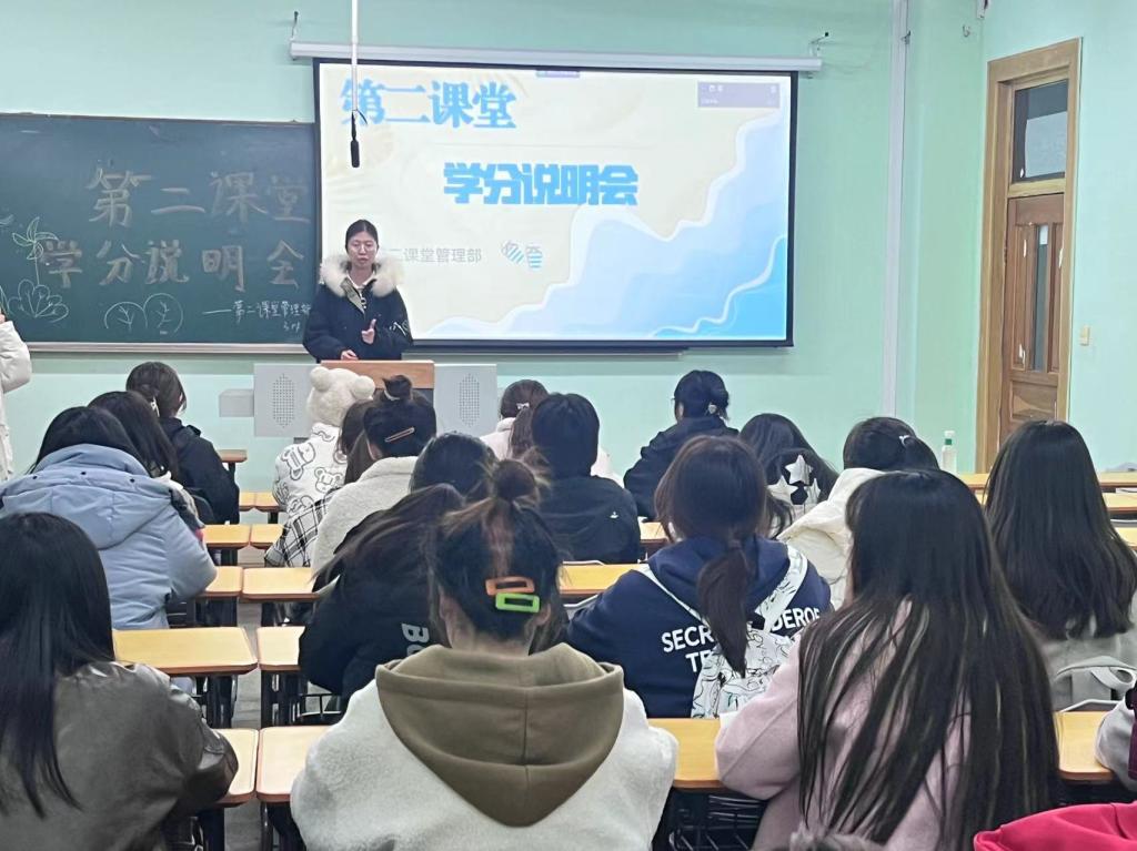 会议最后,主讲人就学分认证问题做了总结。全日制本科生在完成第一课堂学习要求的基础上,需至少修读8个“第二课堂成绩单”学分,其中思想成长不少于2学分,社会实践不少于3学分,文体健康不少于2学分,创新创业不少于1学分,社会工作和技能培训只记录学生实际情况,不计学分。集体项目学分的计算,将按照校“第二课堂成绩单”学分计算标准表执行。