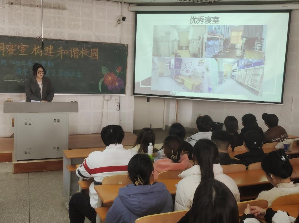 为营造良好的寝室文化氛围,提升学生的自我管理能力,推动betway学风建设,betway西汉姆联官网于3月19日中午,在瑞师楼124教室召开以“营造文明寝室 构建和谐校园”为主题的寝室文化建设启动仪式大会。betway西汉姆联官网党委书记李丙文、学工办全体辅导员、本研学生寝室代表出席会议。大会由学院学生会生活部负责人安雨欣同学主持。