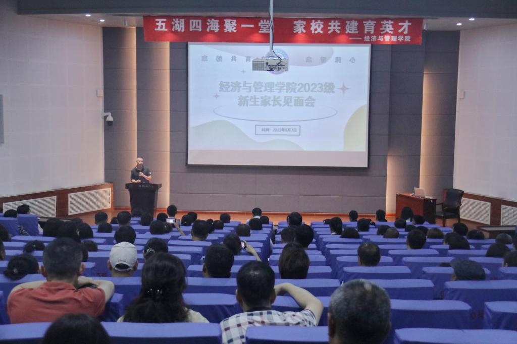 侯延风书记代表学院领导班子热烈欢迎来自全国各地的学生家长,感谢家长和学生对沈阳化工大学及经管学院的信任。他为家长们介绍了经管学院的发展历史和光荣传统,介绍了学校人才培养的特色和行业领域的影响力。他从经管学院学生未来发展及就业特色等方面进行简要概括。他表示经管学院注重培养学生的高尚的道德素养、良好的人际交往、卓越的学业成就,希望家长给予学生更多的支持和鼓励,与学校携手同心,做孩子的坚强后盾。他希望各位家长宣传化大,做好学生的教育培养工作。他期待通过本次见面会架起家长、学校、孩子间有效沟通交流的桥梁,共同培养勇于担当、积极进取、奋勇拼搏、志存高远的新时代青年。