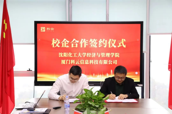 在交流过程中,双方就建立长期稳定的实习基地、开展产学研合作项目以及共同申报科研课题等合作意向进行了探讨,并初步达成了合作框架,并举行了“实习就业基地共建 校企合作”签约仪式,校企双方均表示将积极整合资源,发挥各自优势,为学生创造更多的实习实践机会与就业岗位,实现校企互利共赢、协同发展的目标。沈阳化工大学betway西汉姆联官网副院长刘铁民、教师代表陈丹、徐婧玥,厦门科云信息科技有限公司院校事业部副总经理林英耀、辽宁省总经理胡火坤、科云教育研究院副院长林剑平等参加了签约仪式。