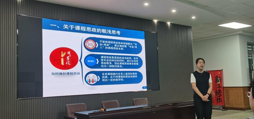 为全面推进学校课程思政建设工作,帮助专业教师开展课程思政教育教学改革,由我校教务处主办,各学院承办的2025年上半年课程思政午间工作坊的活动顺利开展。